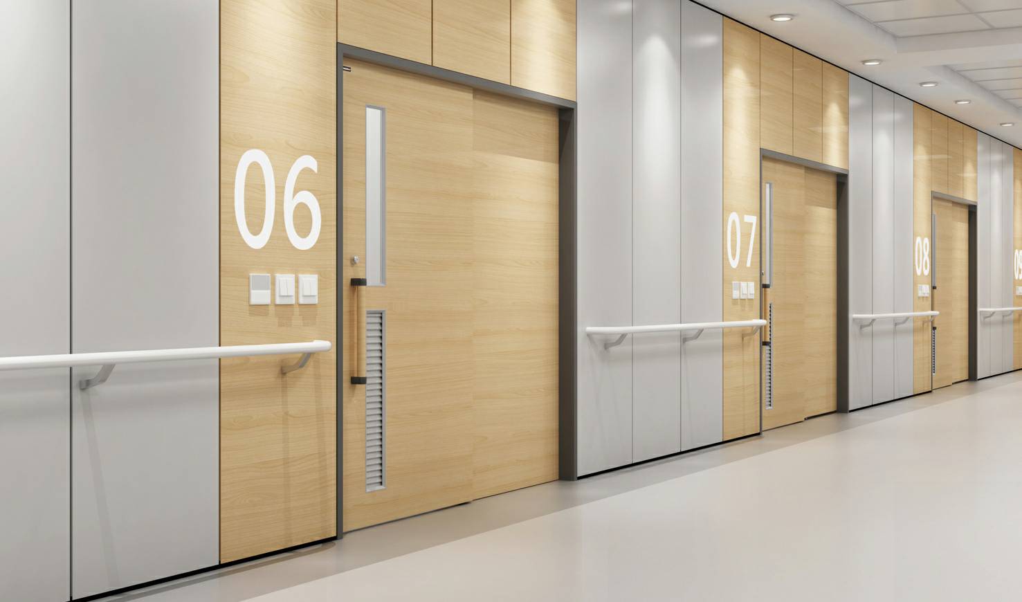 产品种类已覆盖医用钢质门、医用推拉门、室内门、防火门、钢质墙板、钢质空间隔断、金属吊顶等。从接待处到ICU,从化验室到手术室,从病房到行政办公,我们为医院空间环境设计研发多年的产品覆盖各类医院的特定需求..